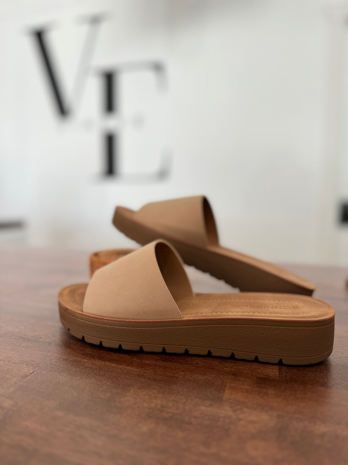 The perfect neutral sandal with a slightly platform sole. A nude shoe that goes with any outfit!